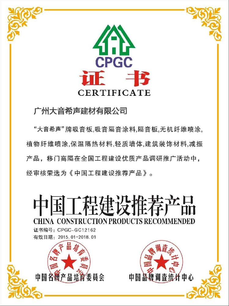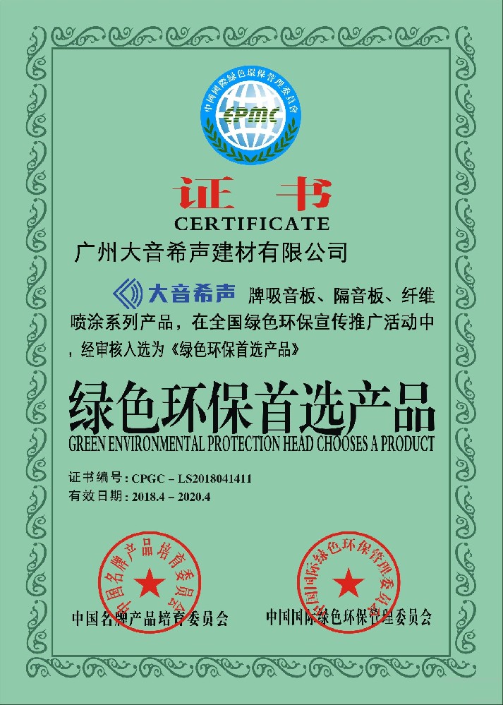 專業(yè)資質(zhì)大音聲學(xué) 廣州大音希聲建材有限公司是一家以聲學(xué)材料生產(chǎn)制造及工程施工為一體的現(xiàn)代新型聲學(xué)企業(yè),主營(yíng)產(chǎn)品為吸音、隔音材料。 公司產(chǎn)品由國(guó)內(nèi)外權(quán)威聲學(xué)專家、聲學(xué)設(shè)計(jì)師研發(fā)設(shè)計(jì)而成,保證了材料的聲學(xué)性能和裝飾效果。為了滿足客戶的更高需求,公司不斷引進(jìn)先進(jìn)的生產(chǎn)設(shè)備,嚴(yán)控產(chǎn)品質(zhì)量,創(chuàng)新工藝,各類聲學(xué)材料的年產(chǎn)量達(dá)到50萬平方米以上。 公司擁有一批專業(yè)從事產(chǎn)品研發(fā)制造、管理、銷售、客服等的人才團(tuán)隊(duì)。經(jīng)過多年高速發(fā)展,公司產(chǎn)品遠(yuǎn)銷全球20余個(gè)國(guó)家,廣泛應(yīng)用于體育館、影院、教室、會(huì)議室、錄播室、酒店、娛樂場(chǎng)所等場(chǎng)景,贏得了社會(huì)的高度認(rèn)可。 在今后的發(fā)展道路上,我們將以更嚴(yán)謹(jǐn)?shù)钠焚|(zhì)、更專業(yè)的能力、更優(yōu)質(zhì)的服務(wù)面向社會(huì),致力于建立長(zhǎng)遠(yuǎn)的合作關(guān)系,為我們的生活締造優(yōu)雅視聽空間。